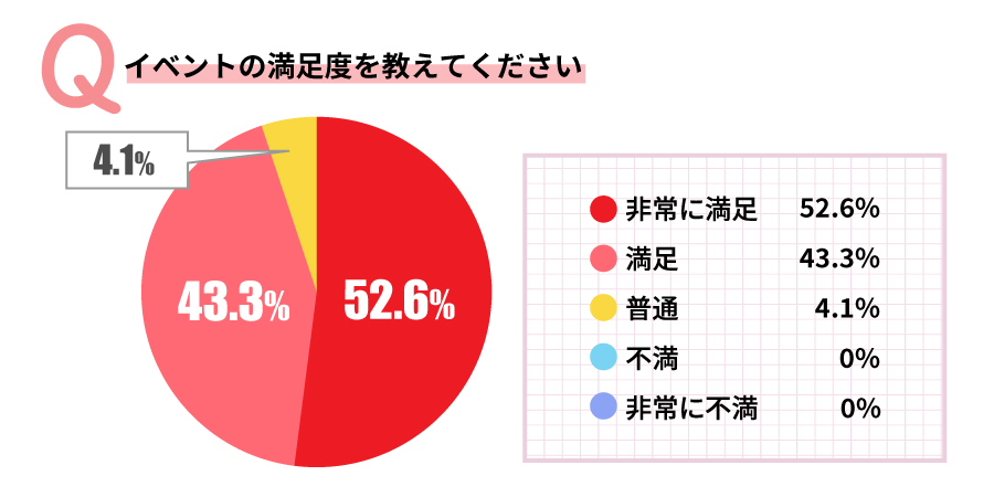 イベントの満足度について、「満足」「非常に満足」と回答した方の割合は95.9%!