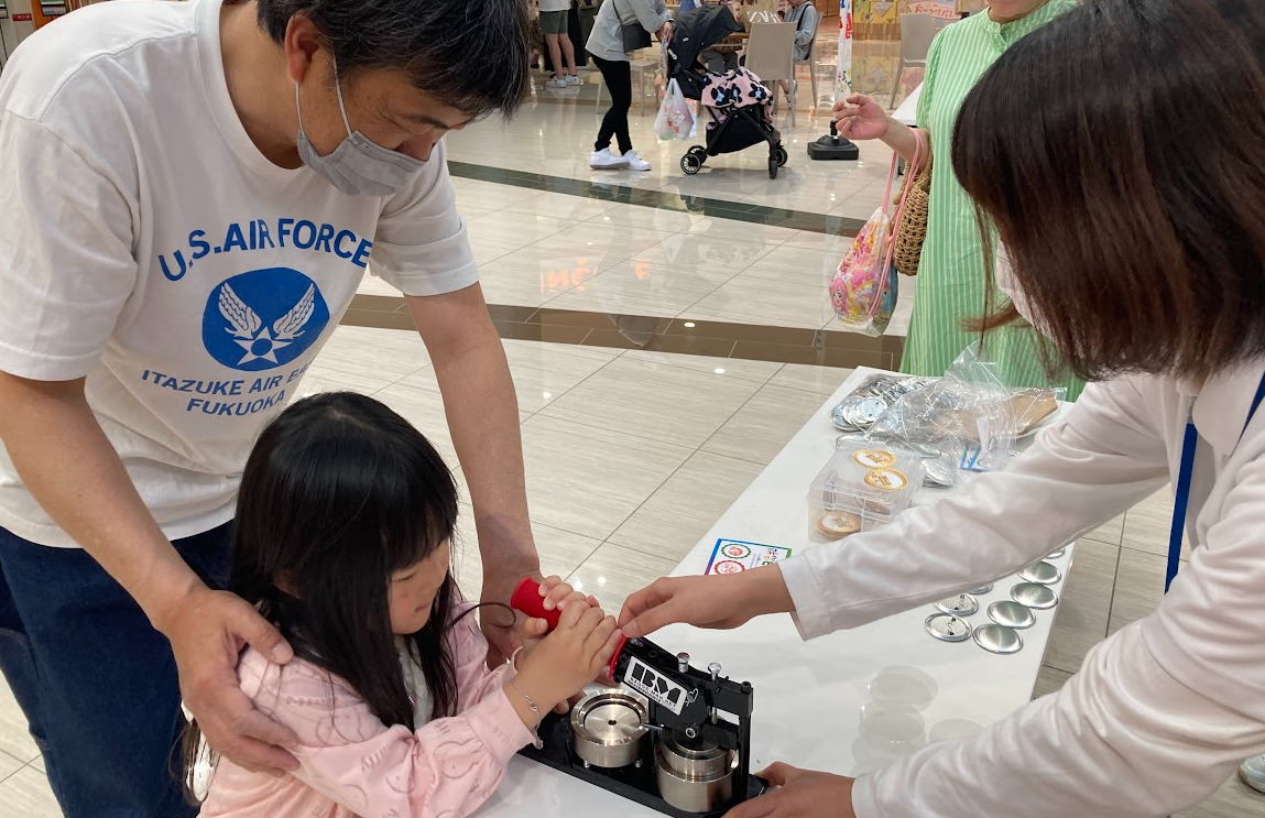 缶バッジを手に記念写真を撮るご家族もいらっしゃいました。