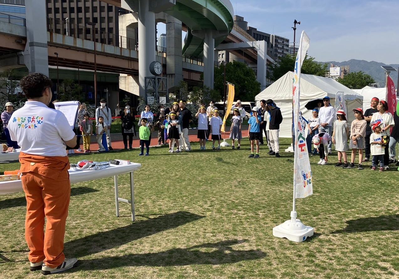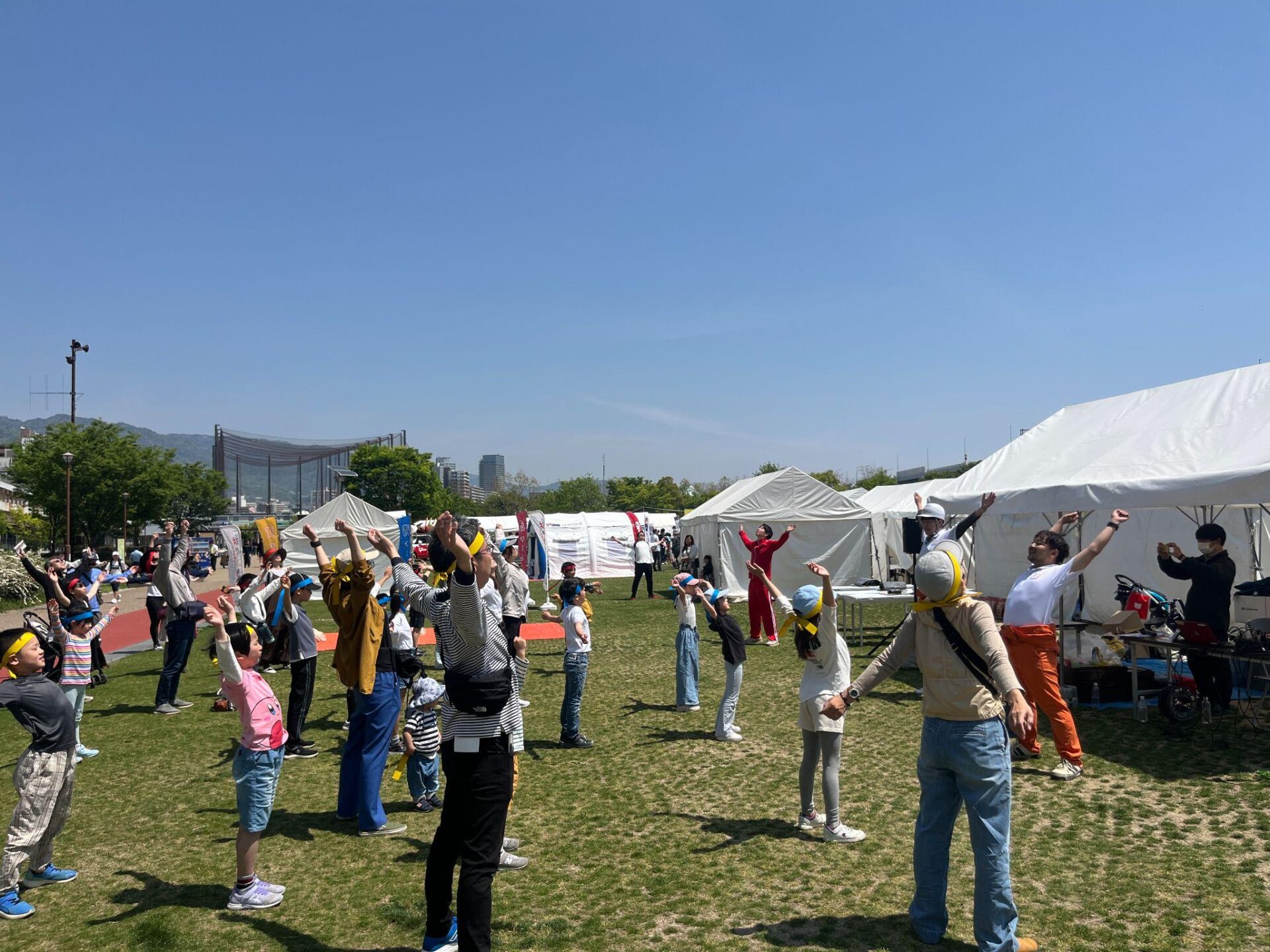 神戸市様主催のもと、2025年4月に兵庫県神戸市の神戸市みなとのもり公園で開催されたイベント「レジリエンスセッション 震災と未来のこうべ博」にて、防災ヒーロー入団試験と防災運動会のアクティビティが実施されました。ファミリー層を中心に約1,000人が参加しました。
