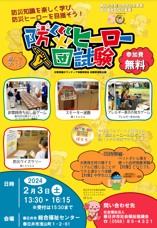 『春日井市総合福祉センター』にて「防災ヒーロー入団試験」が開催決定!