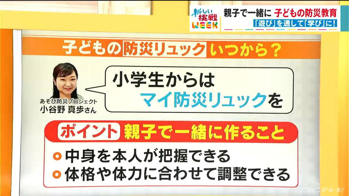 番組では「こどもへの防災教育や備え」をテーマに、こどもへの防災の伝え方やこども用防災リュックのおすすめの準備グッズについて紹介しました。