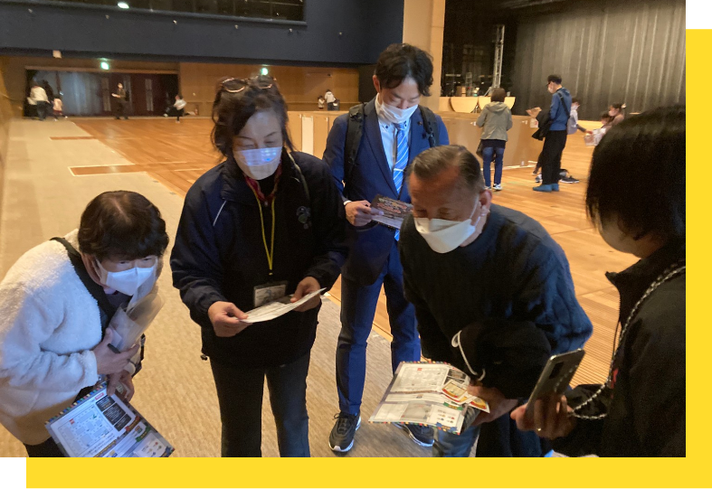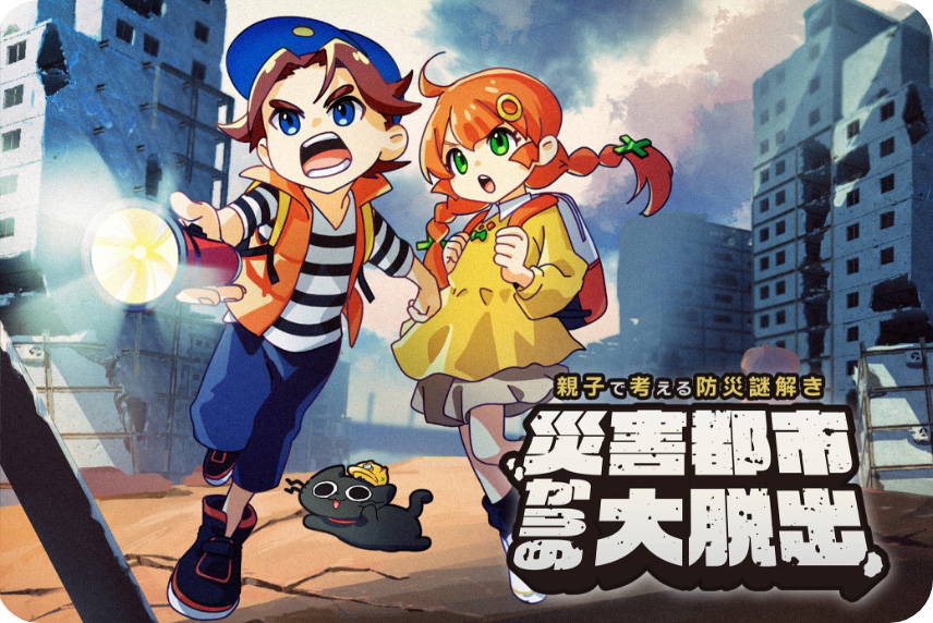防災謎解きは、親⼦で楽しめる謎解きゲームです。パンフレットを⼿に会場を周遊しながら全ての謎を解き明かせ︕謎解きの過程で防災知識を⾝につけることができます。