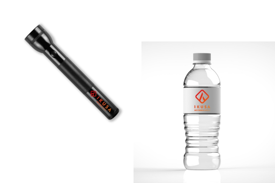 懐中電灯やウォーターボトル、モバイルバッテリーなど、イベント名やロゴ⼊りの防災グッズ制作が可能です。