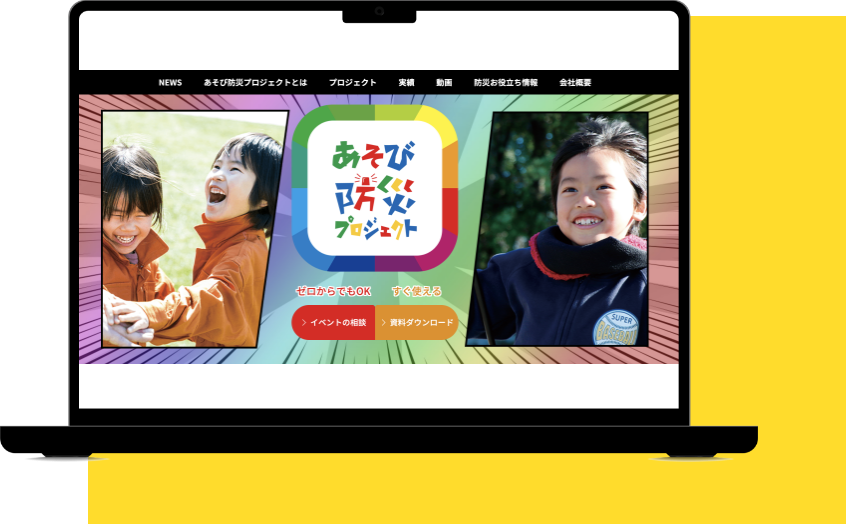 防災について丸⼀⽇かけて学べる、楽しいコンテンツをご提供します。⾷べるものや⾒るものはもちろん、「体験」にフォーカスしたコンテンツが得意です。
